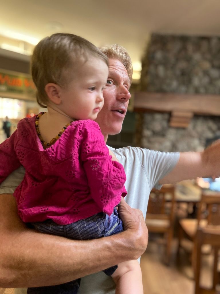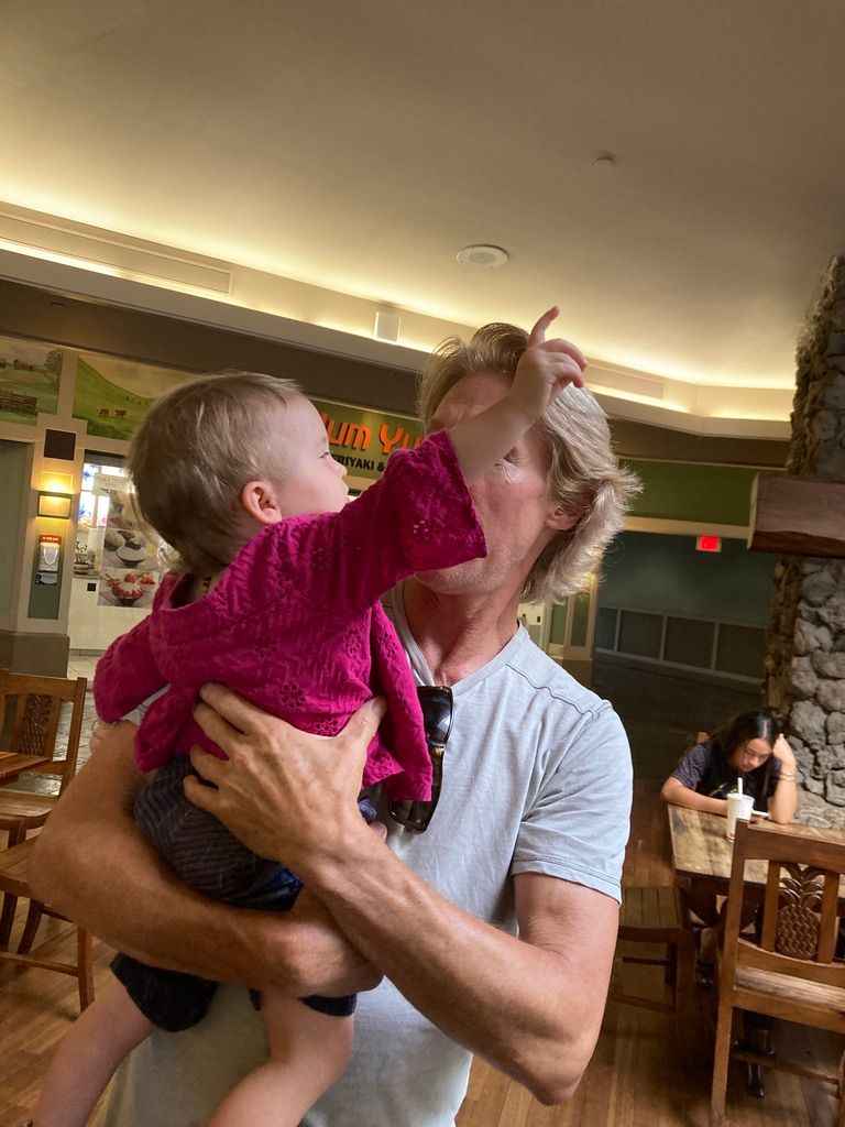 Later that day, Audrey, a native to Hawaii, met with us in the Waimea shopping mall for lunch where we got to know one another more and hear how God moved in her life. She wanted to know how we shared the gospel and so we shared it with a couple of new friends who had never heard it before. Afterwards, while waiting for our food, we thought, maybe we could pray for someone, and right then young Amelia shows up at Skye's feet. We followed her to her Mom and asked if she needed prayer and she responded, "Boy, do we ever need prayer!" Amelia really took to Skye. We had a nice connection and we got to pray for her family who've been really struggling to get there place built over the last four years because of many obstacles!