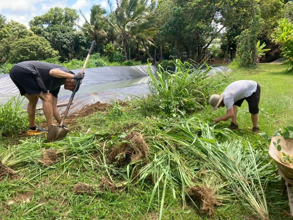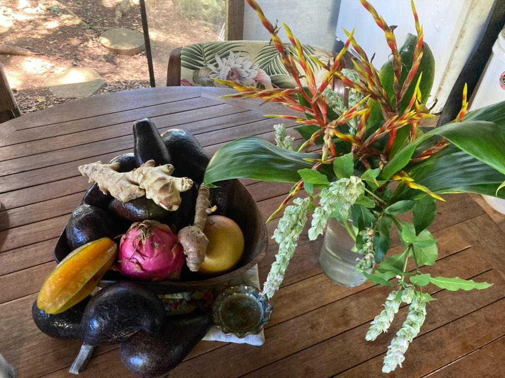 Greg, Timothy’s dad, has a more traditional Hawaiian style home also on the property where we would have morning bible study and fellowship along with a near by neighbor, Elliot, who is hungry as could be for the transformative word of God. I think Elliot will become a pastor someday as his zeal is huge! The guys did yardwork most days while I prepared food for them, cleaned and attached orchids to the trees.