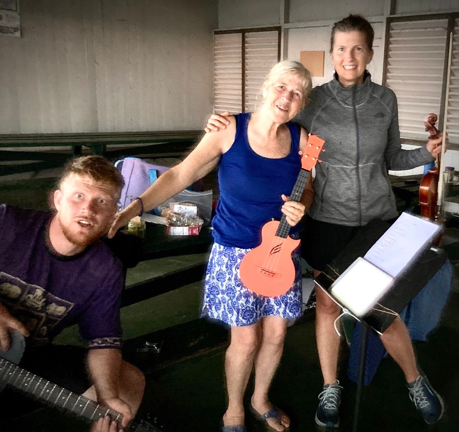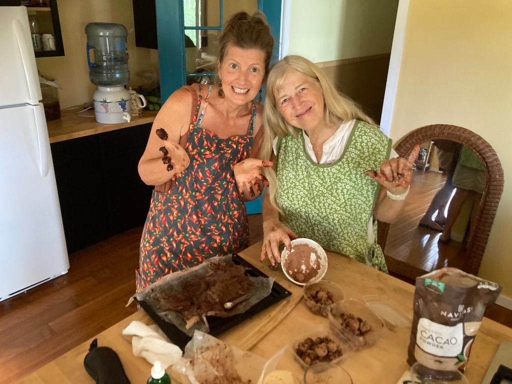 It wouldn't be a trip to Hawaii without a jam at the local beach shelter for some Hawaiian ukulele music with Timothy's sweet mom Anne! Shadrack, another guy staying at the farm we were on, also joined in with his flamenco style guitar player. Ann is a great cook and we topped off our trip with making chocoloate coconut mint balls to share at our gatherings and Bible Study. They were a hit!